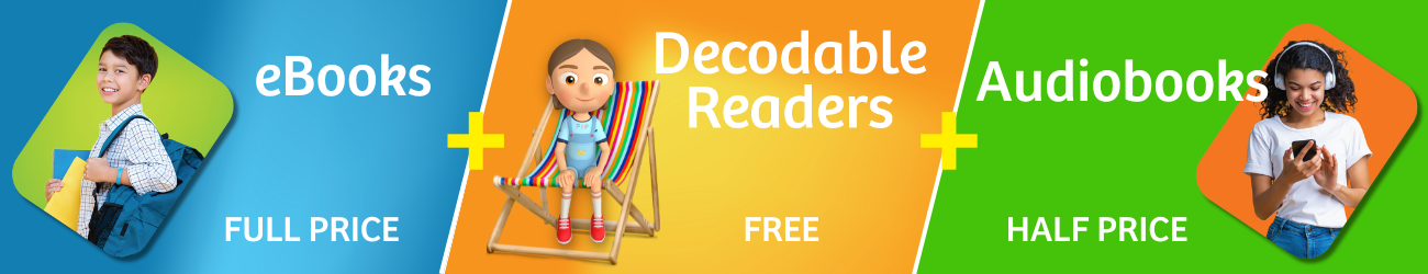 Take out an eBooks full year subscription at full price - get the brand new Decodable Readers Digital Phonics Program for free - and then add on Audiobooks at half price! Or vice-versa!